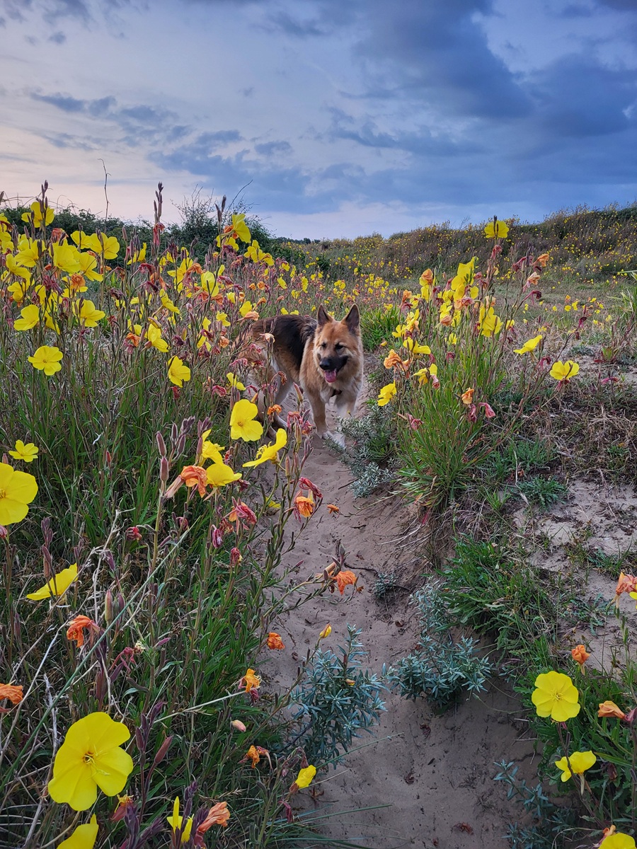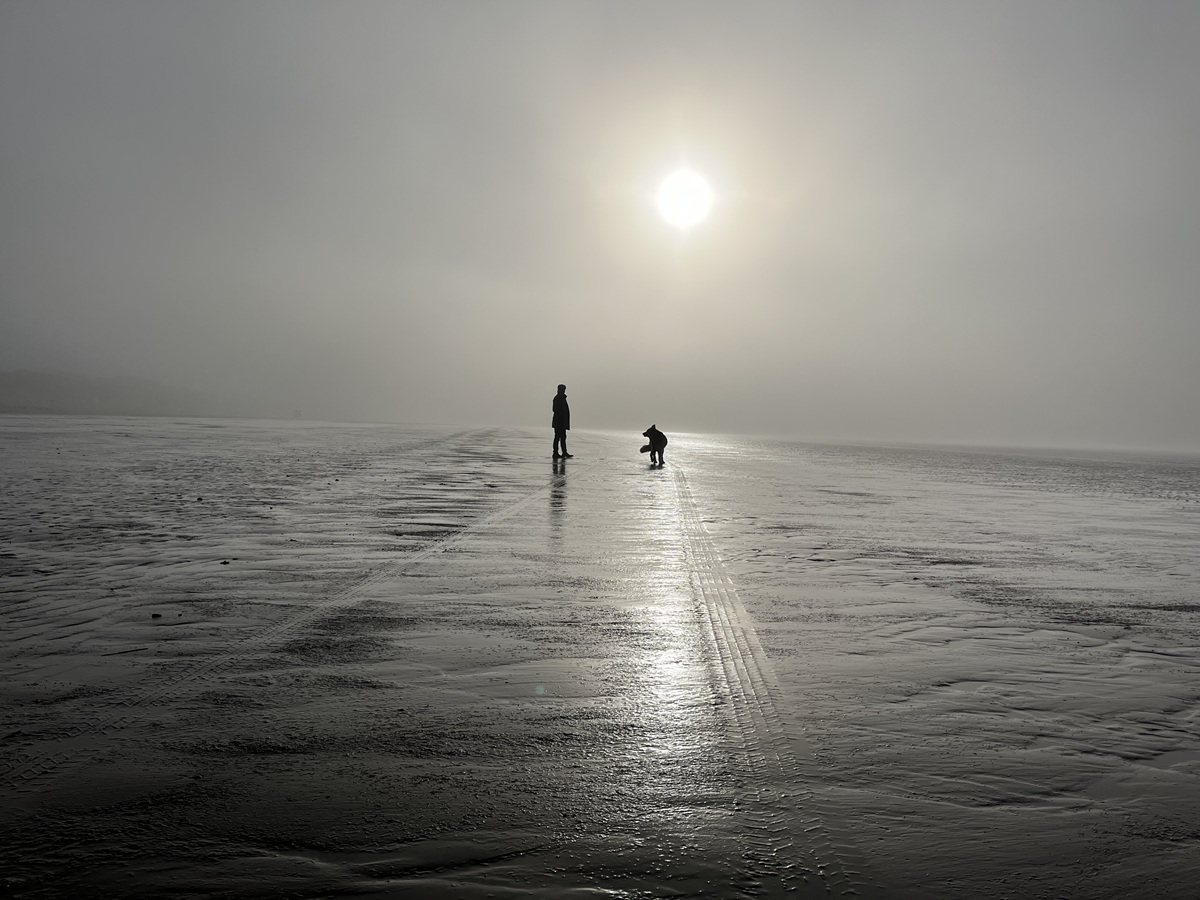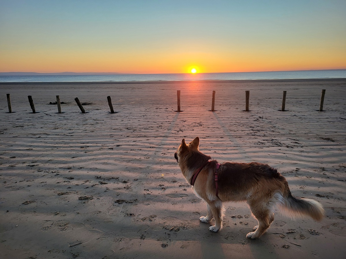 Pups at play on Burnham Beach at sunset by Glenda Fry